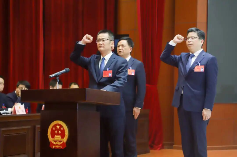 新当选的区人大常委会主任、区政府区长、区人大常委会副主任进行了宪法宣誓。