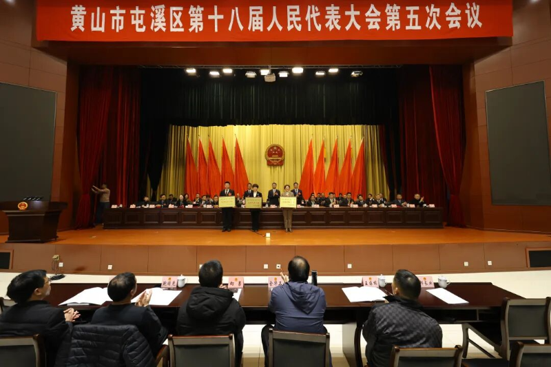 1月17日下午,黄山市屯溪区第十八届人民代表大会第五次会议圆满完成各项议程,在雄壮的国歌声中闭幕。