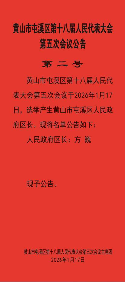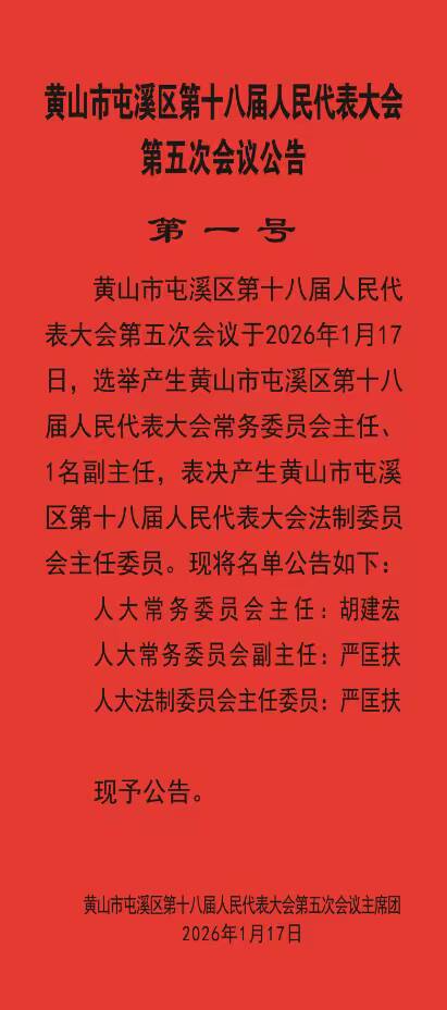 黄山市屯溪区第十八届人民代表大会第五次会议公告